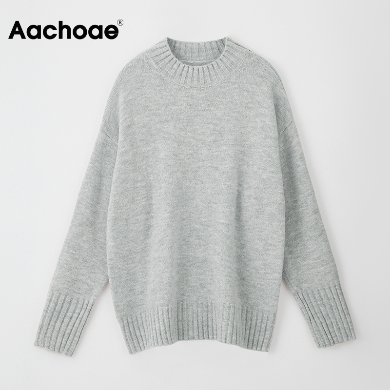 Aachoae Casual O Neck Batwing Sleeve Sweater Women Solid All Match Knitted Tops Loose Pullover Female Sweater Sweter Damski