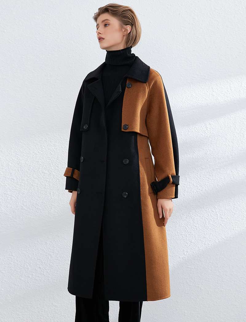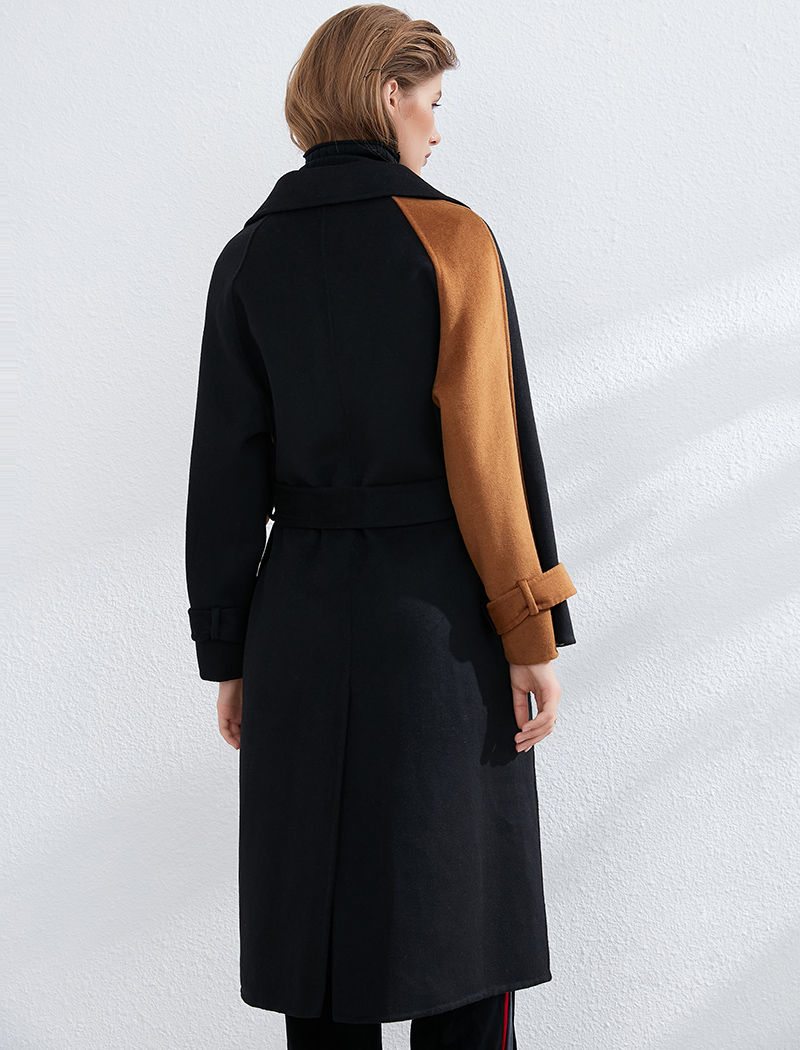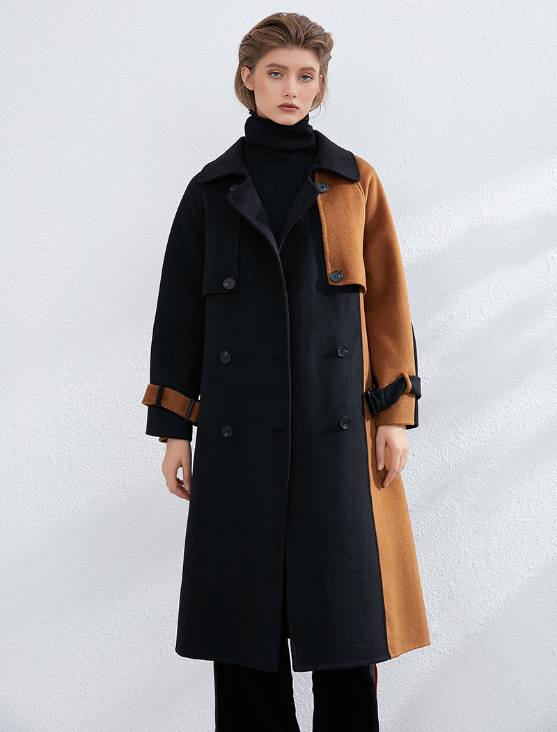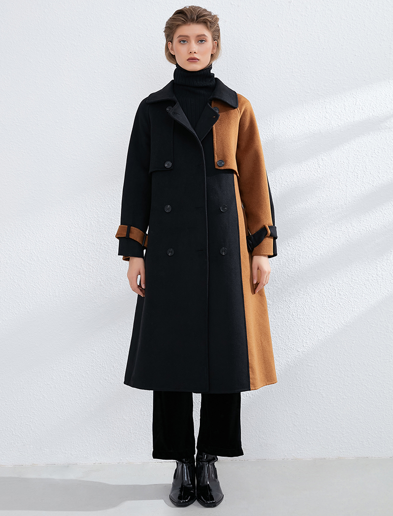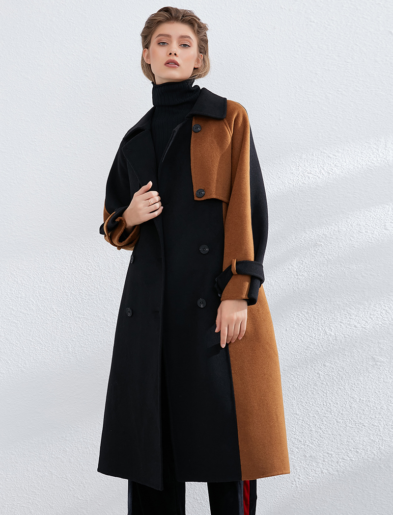 Aachoae Women Patchwork 100% Wool Long Coat With Belt 2020 Vintage Long Sleeve Pockets Jacket Winter Double Breasted Outerwear