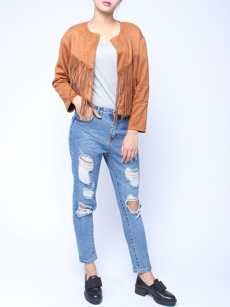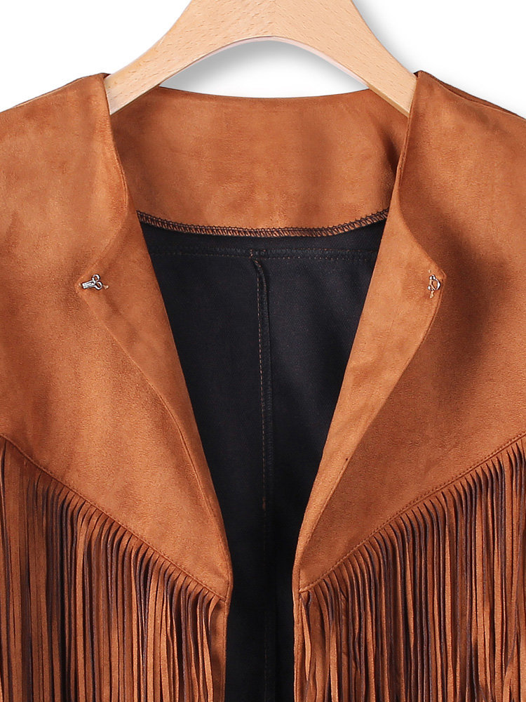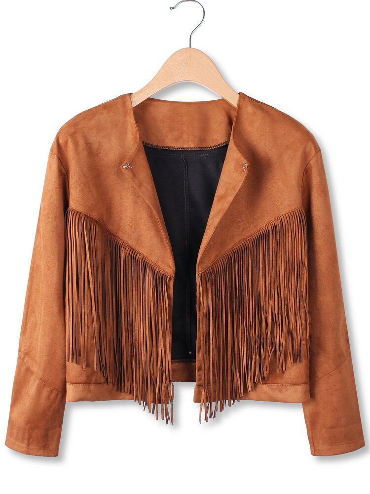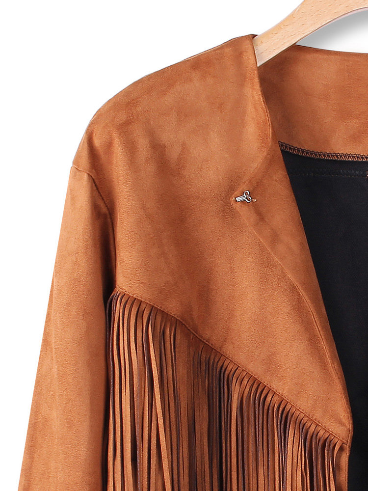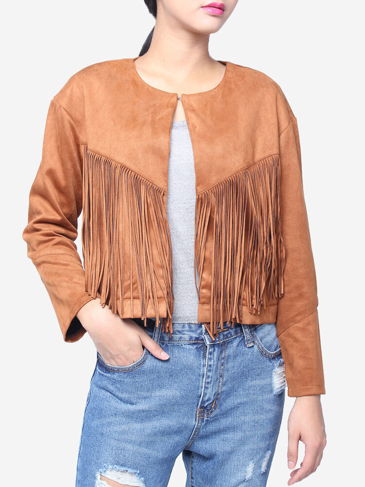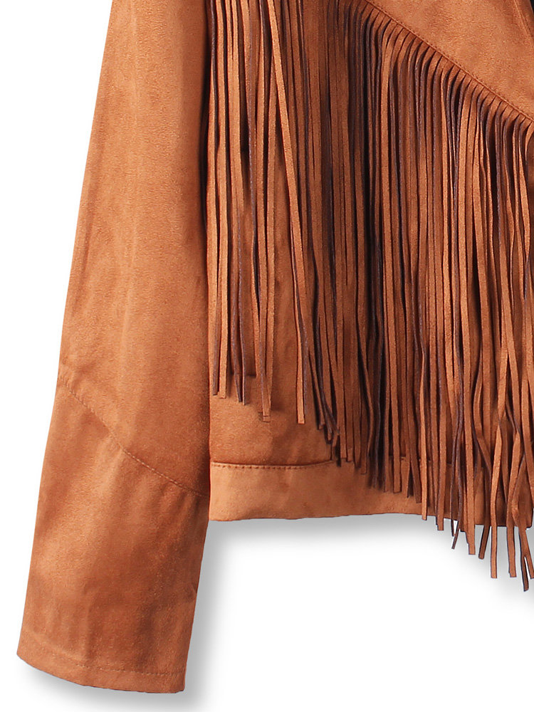 Women Long Sleeve Irregular Tassel Short Jacket Coat