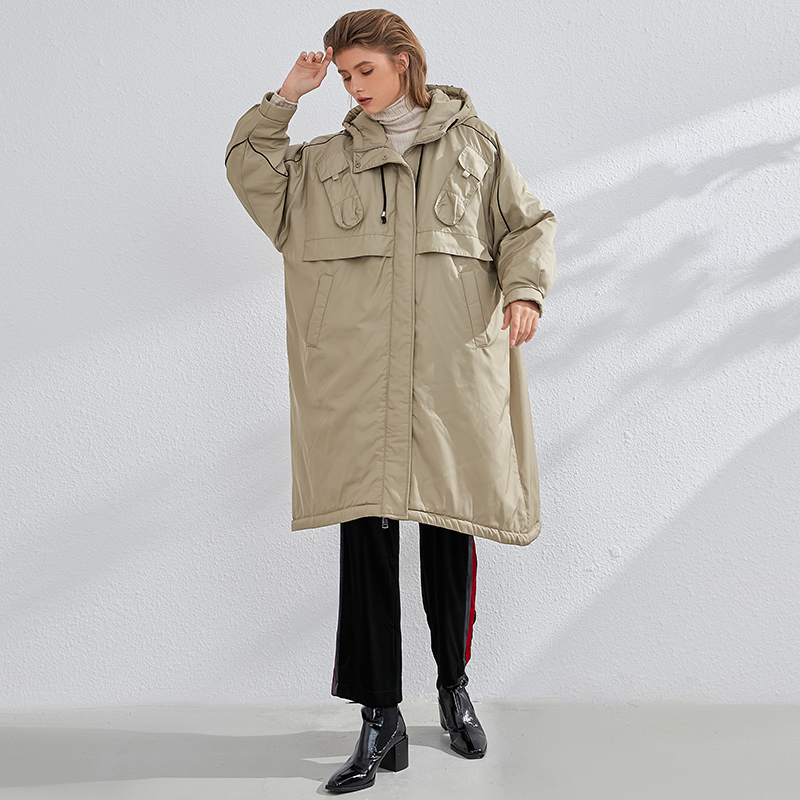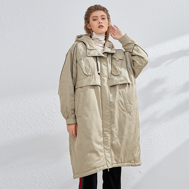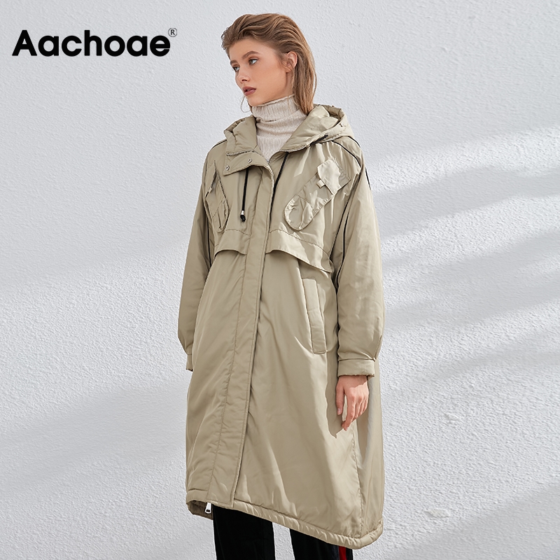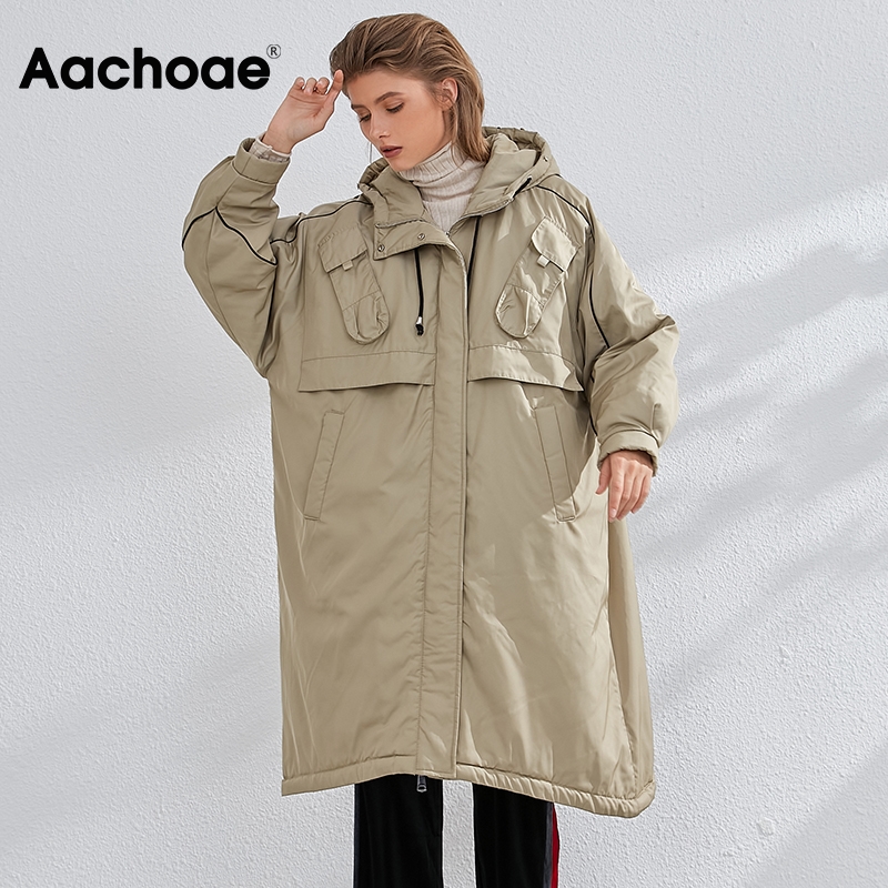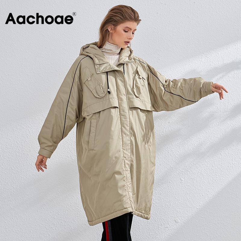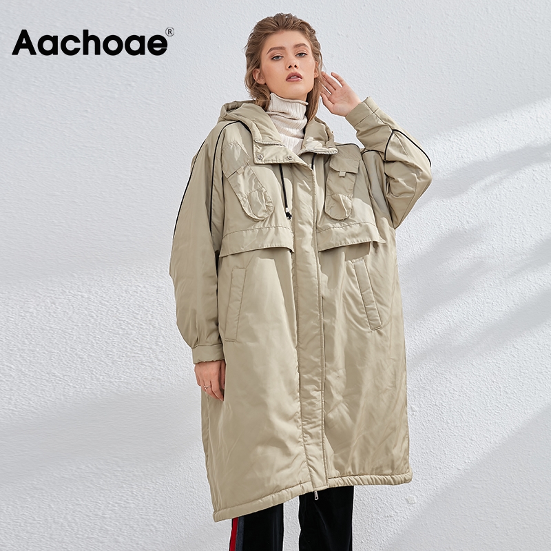 税费 Aachoae Streetwear Loose Long Hooded Jacket Women White Duck Down Coat Female Fashion Pockets Decorate Warm Parkas Winter 2020