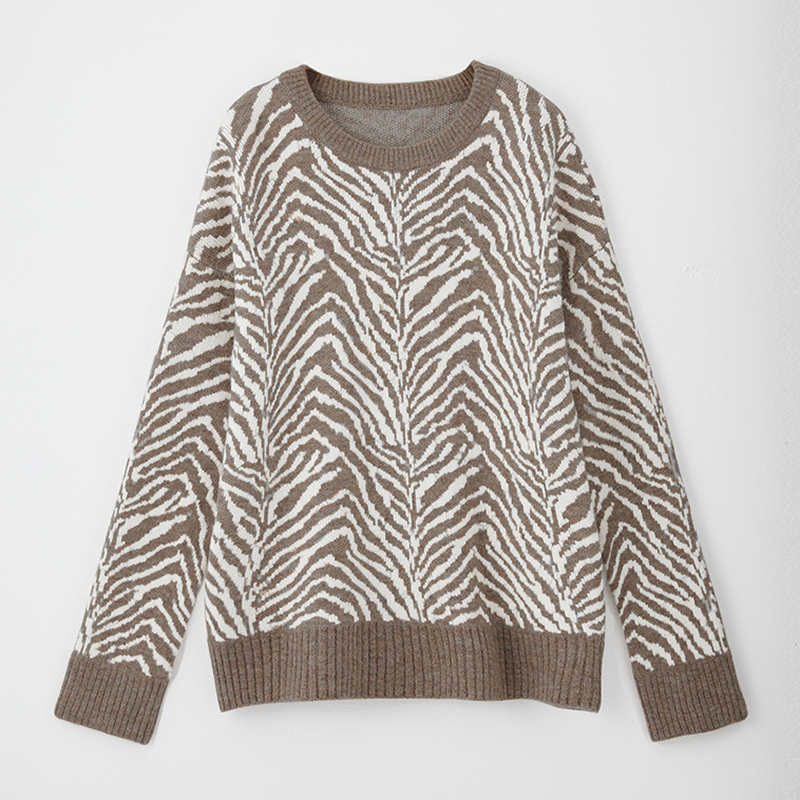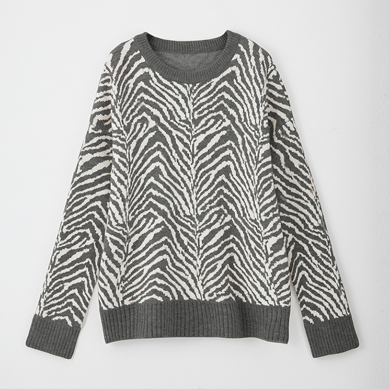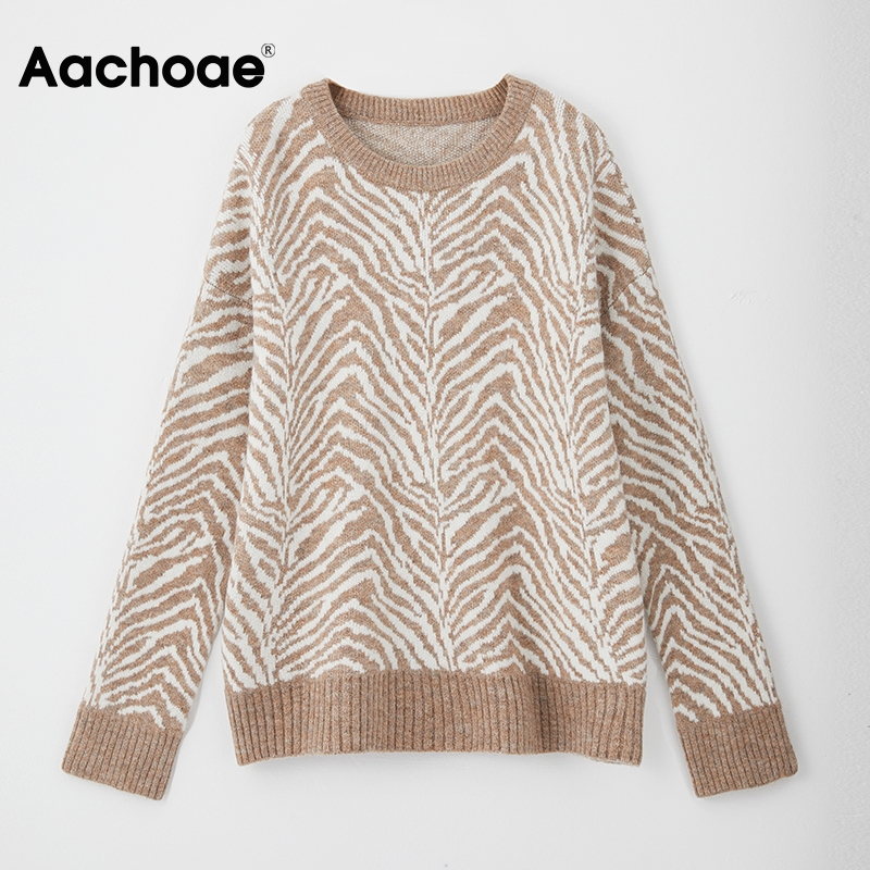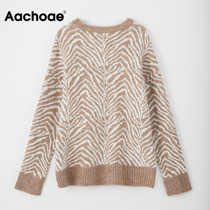 Aachoae Zebra Striped Print Vintage Sweater Women O Neck Autumn Winter Knitted Pullover Casual Long Sleeve Ladies Jumpers