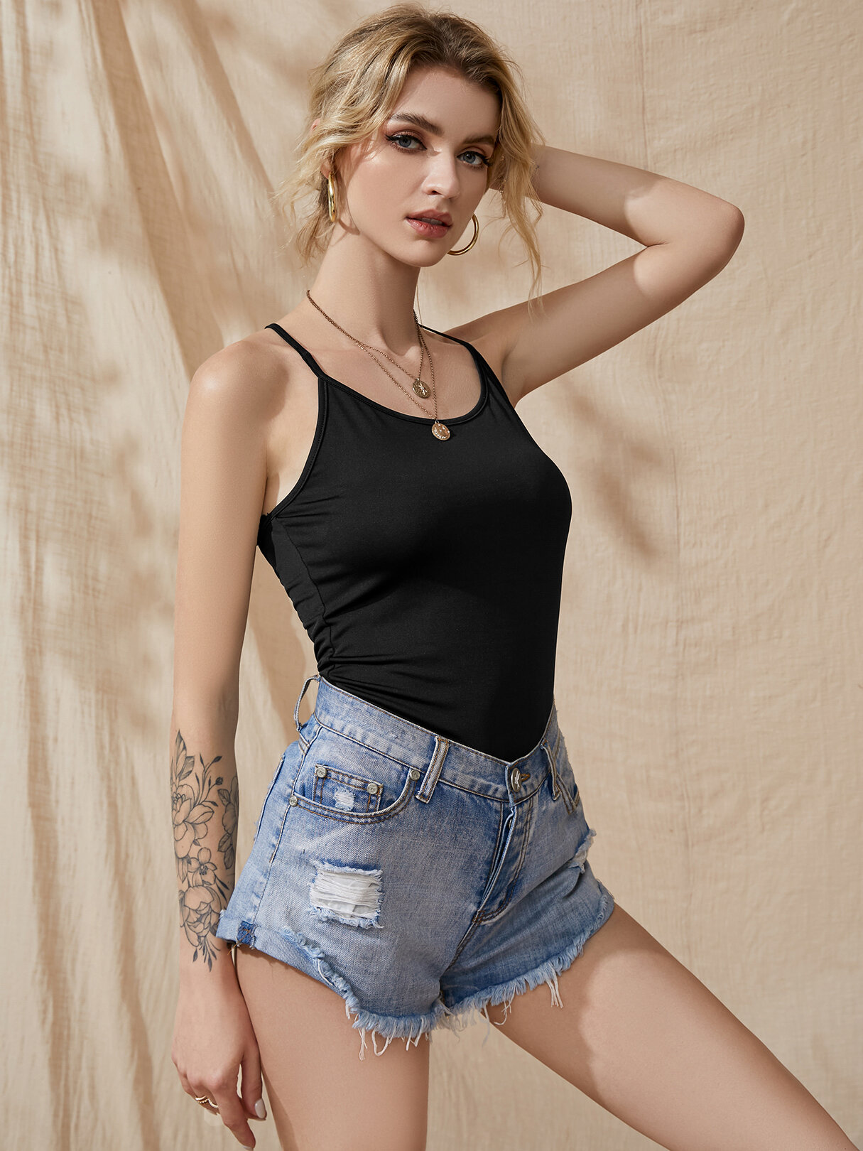 Cut Out Backless Lace Trim Tie Spaghetti Cami