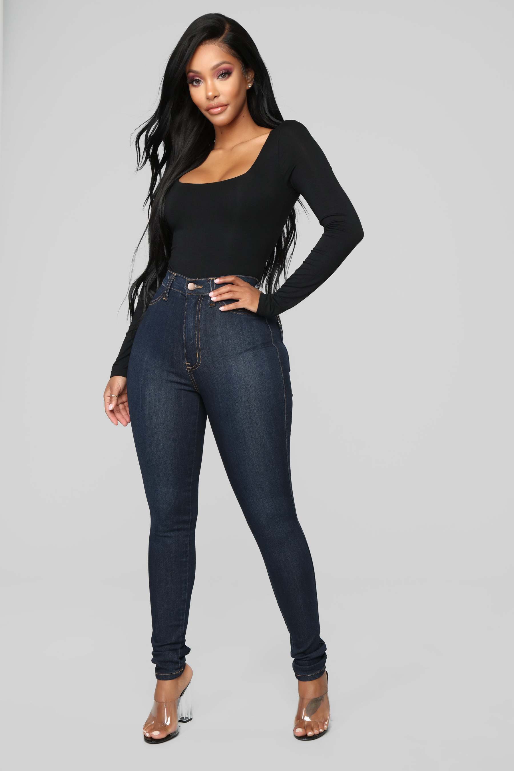 Say hi to your waist as you slip into our best-selling flexible stretch denim pants. The Classic High Waist Skinny Jeans feature a dark wash, 2 back pockets, 2 faux front pockets, a zip fly closure, and are available in Curve. Providing a seamless transition from day to night, these jeans are a wardrobe essential.