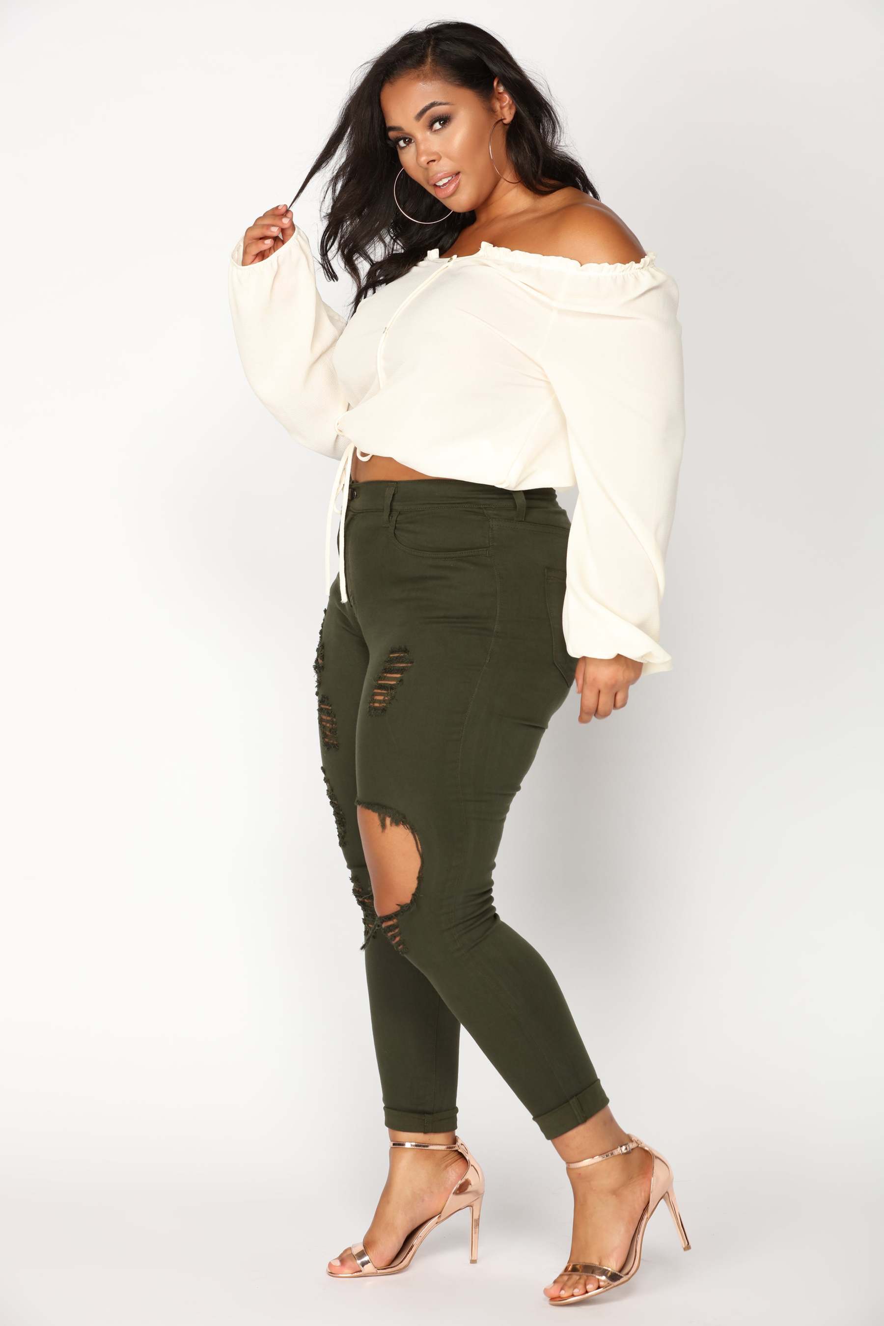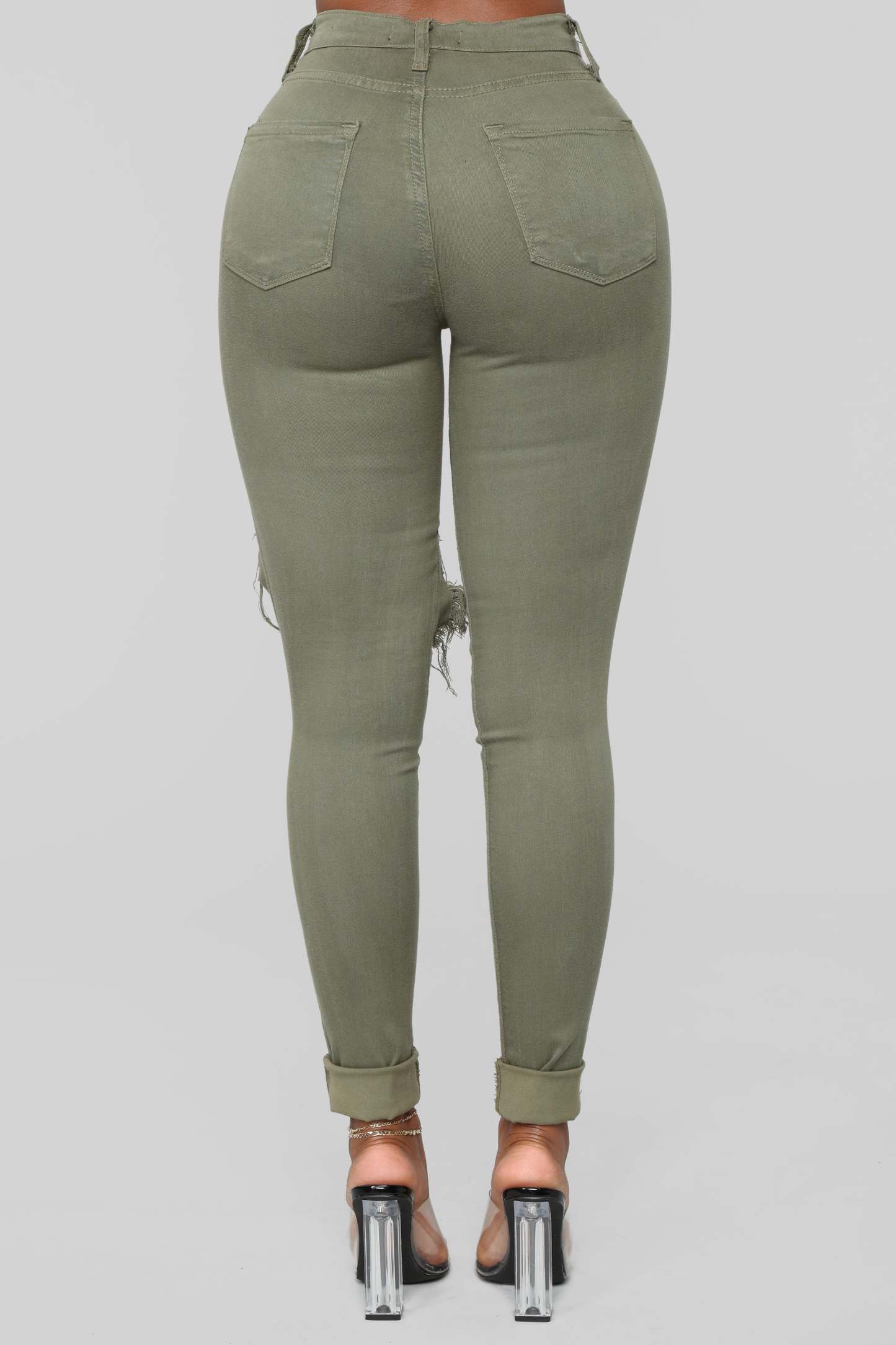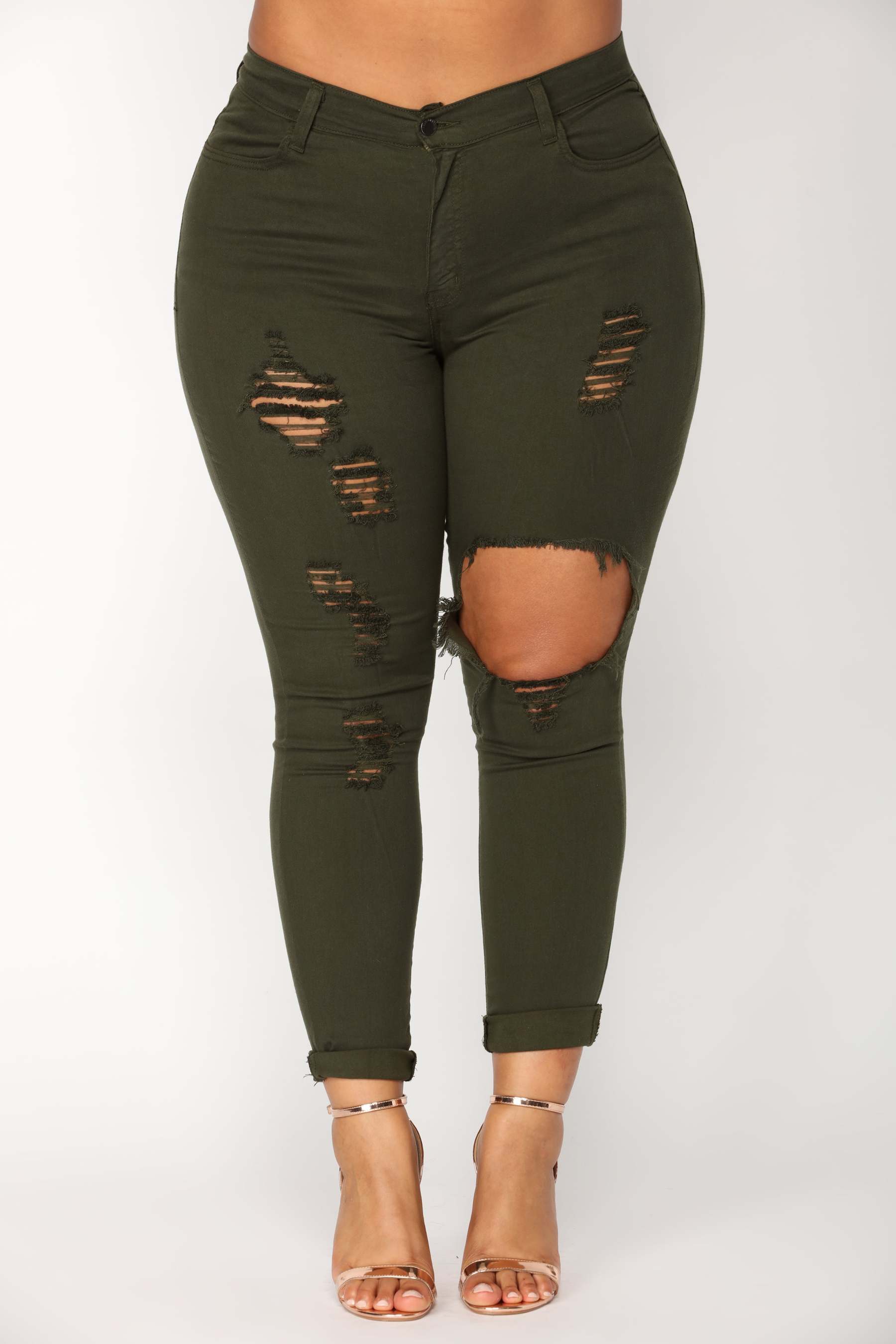 You look torn-- just get every color! Our Glistening Jeans are destroyed in all the right places. Featuring a mid rise, 5-pocket design, these jeans will flatter your every move. Also available in white, black, olive, dark wash, and medium wash. Now available in Curve.