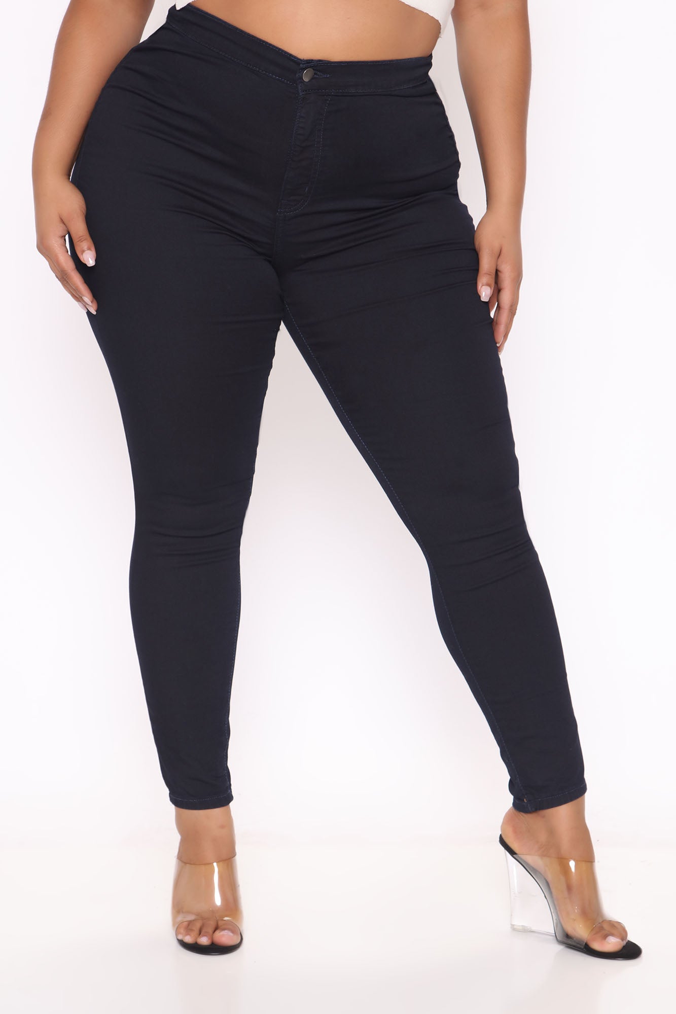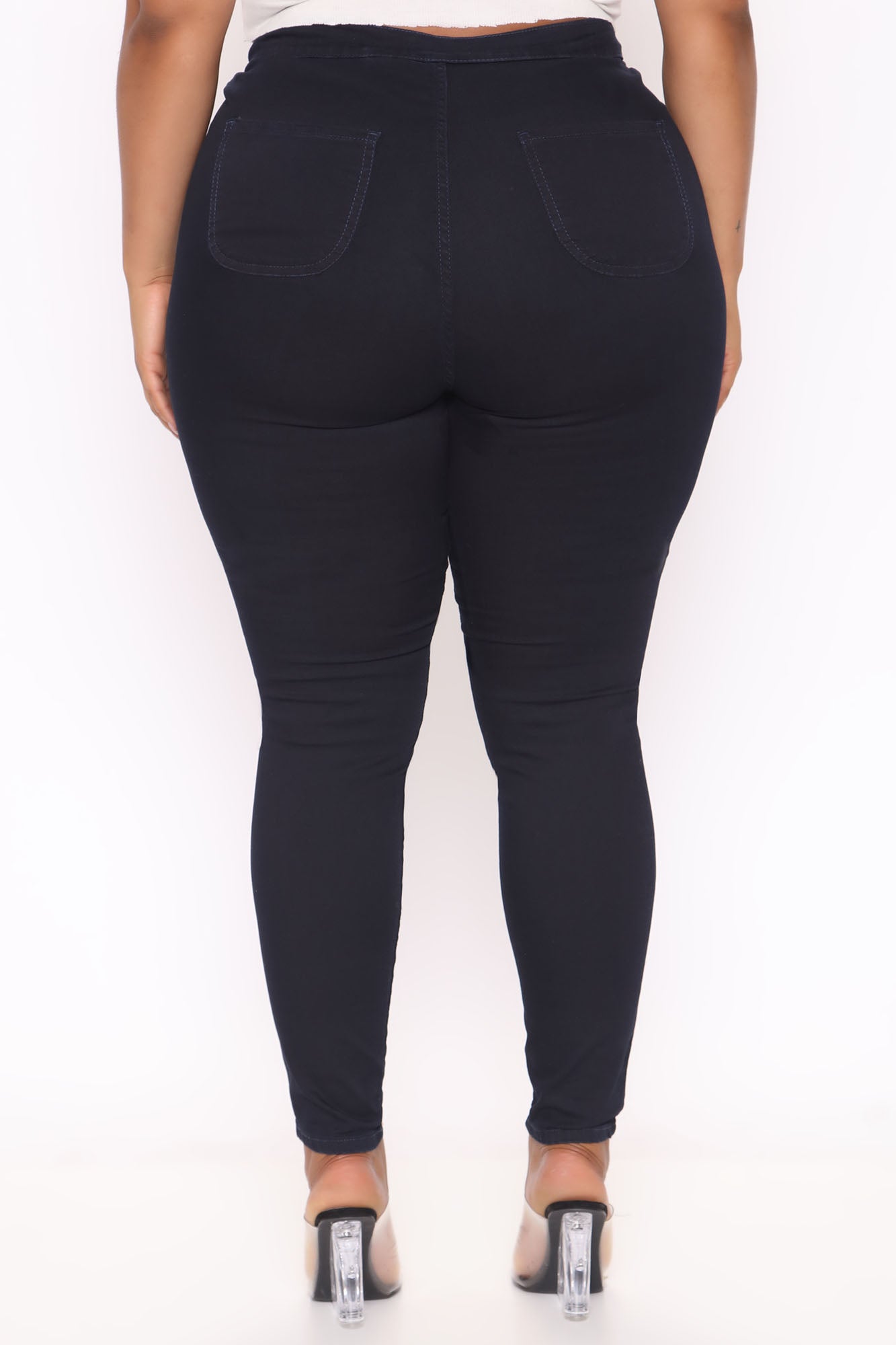 Consider your waist instantly snatched. Our Super High Waist Denim Skinnies will hug your curves tight while still allowing you to move freely. Featuring 2 round back pockets and a cotton-poly-spandex blend, you'll want these jeans in every color.
